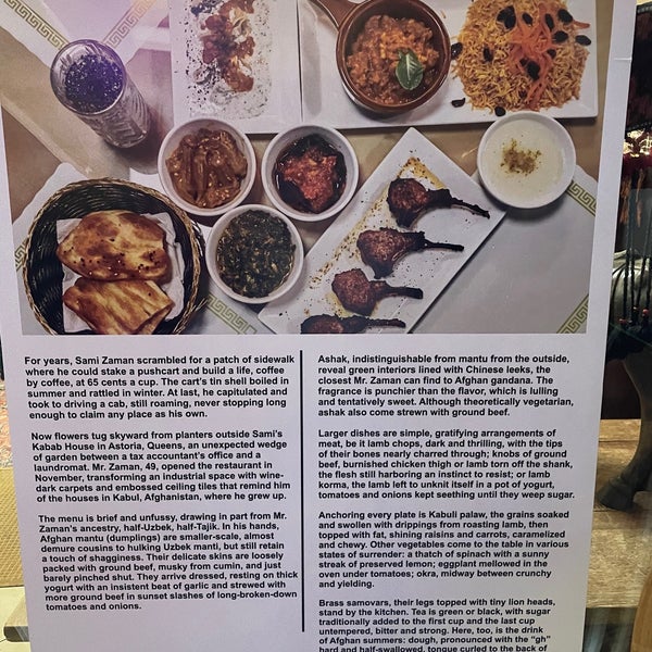 The owners of an Afghan restaurant in Astoria plan to open a similar venue in Long Island City this summer. For years Sami Zaman scrambled for a patch of sidewalk where he could stake a pushcart. You are viewing Afghan Kebab House prices confirmed by PriceListo at one or more locations in United States Select Location 259-11 Hillside Avenue Queens NY 11004.
